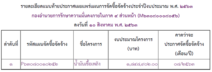 จัดซื้อ จัดจ้างประกาศแผนการจัดซื้อ จัดจ้าง เผยแพร่แผนการจัดซื้อจัดจ้าง ประจำปีงบประมาณ พ.ศ. ๒๕๖๓ โครงการ นํ้ามันเชื้อเพลิง P๖๓๐๘๐๐๑๐๒๕๒ August 11, 2020 1315 Share Facebook Twitter Google+ Telegram LINE สบป.กอ.รมน.ภาค 4 สน.