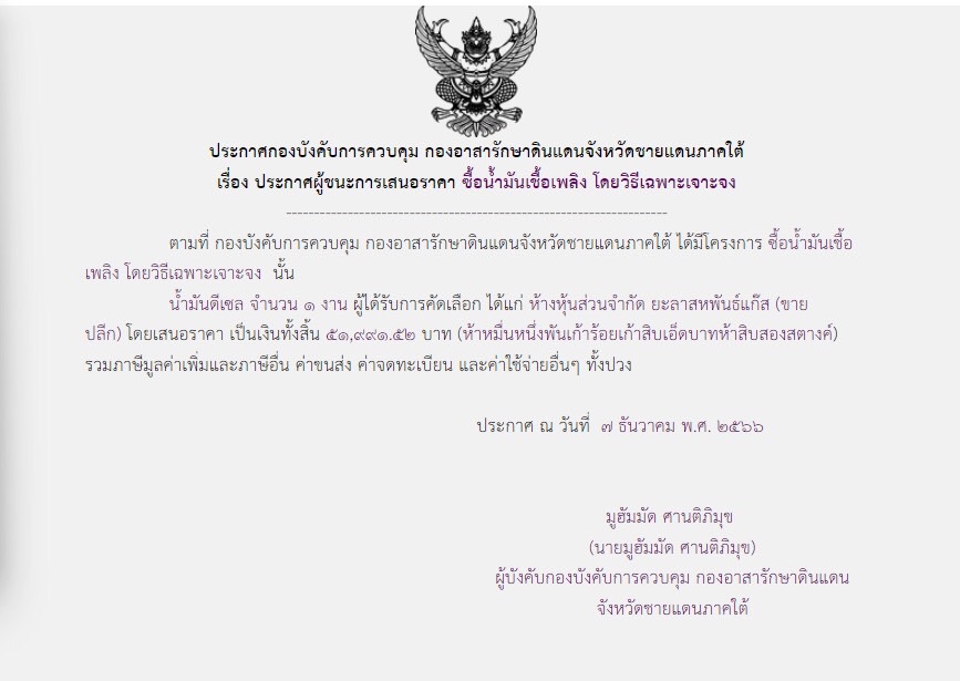 องคมนตรี เชิญสิ่งของพระราชทานเนื่องในโอกาสปีใหม่ 2569 มอบให้แก่เจ้าหน้าที่ ที่ปฏิบัติภารกิจในพื้นที่จังหวัดชายแดนภาคใต้