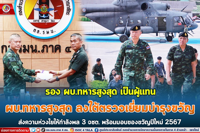รอง ผบ.ทหารสูงสุด เป็นผู้แทน ผบ.ทหารสูงสุด ลงใต้ตรวจเยี่ยมบำรุงขวัญ ส่งความห่วงใยให้กำลังพล 3 จชต. พร้อมมอบของขวัญปีใหม่ 2567