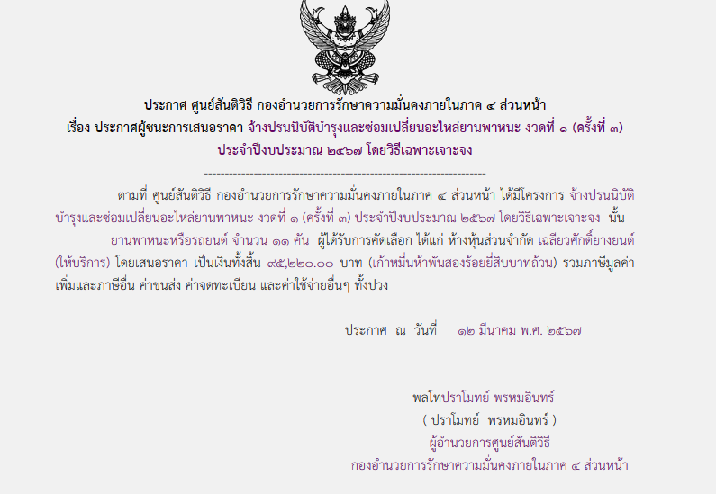 • ประกาศผู้ชนะการเสนอราคา