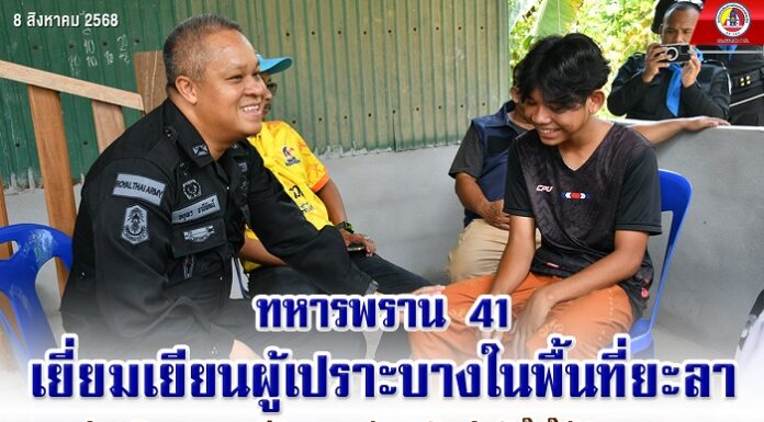 ทหารพราน 41 เยี่ยมเยียนผู้เปราะบางในพื้นที่ยะลา ส่งเสริมคุณภาพชีวิตและสร้างขวัญกำลังใจให้ประชาชน