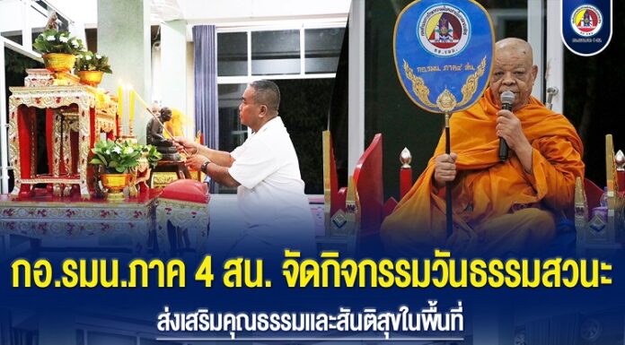 เมื่อวันที่ 9 สิงหาคม 2568 กองอำนวยการรักษาความมั่นคงภายในภาค 4 ส่วนหน้า ได้จัดกิจกรรมสวดมนต์ ทำวัตรเย็น และเจริญจิตภาวนา เนื่องในวันธรรมสวนะ ณ ลานปฏิบัติธรรมเขาพระศรีศากยมุณีพุทธโคดม ภายในค่ายสิรินธร อำเภอยะรัง จังหวัดปัตตานี โดยมี พลเอก วรเศรษฐ์ เจริญผล รองผู้อำนวยการสำนักอำนวยการข่าวกรอง เป็นประธานในพิธี พร้อมด้วยกำลังพลและครอบครัว เข้าร่วมอย่างพร้อมเพรียง