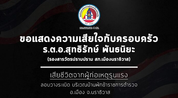 เสียชีวิตจากผู้ก่อเหตุรุนแรง ลอบวางระเบิดบริเวณบ้านพักข้าราชการตำรวจ อำเภอเมือง จังหวัดนราธิวาส