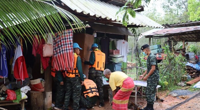 ที่ บ้านปลักผอม หมู่ที่ 5 ตำบลท่าประดู่ อำเภอนาทวี จังหวัดสงขลา พันตำรวจโท วิษณุ ชนะอักษร ผู้บังคับการหน่วยเฉพาะกิจตำรวจตระเวนชายแดนที่ 43 พร้อมด้วย ฝ่ายกิจการพลเรือน หน่วยเฉพาะกิจตำรวจตระเวนชายแดนที่ 43 ,ประธานโฆษกชาวบ้านจังหวัดสงขลา ร่วมกับ องค์การบริหารส่วนตำบลท่าประดู่ และส่วนราชการที่เกี่ยวข้อง เดินทางสำรวจพื้นที่ประสบภัย และเข้าช่วยเหลือผู้ประสบอุทกภัย พร้อมมอบข้าวสาร อาหารแห้ง และน้ำดื่มแก่ผู้ประสบอุทกภัยเพื่อเป็นขวัญกำลังใจและบรรเทาความเดือดร้อนในเบื้องต้น โดยมี นายสหภาพ หวังเลาะ ผู้ใหญ่บ้าน เป็นผู้แทนรับมอบ ทั้งนี้การปฏิบัติดังกล่าวเป็นไปด้วยความเรียบร้อย