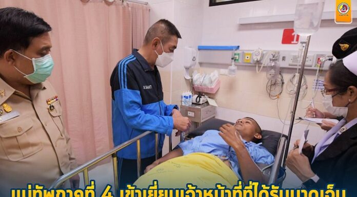 แม่ทัพภาคที่ 4 เข้าเยี่ยมเจ้าหน้าที่ที่ได้รับบาดเจ็บ จากเหตุบังคับใช้กฎหมายต่อผู้ก่อเหตุรุนแรง ในพื้นที่ บ้านดอนรักจะรัง อำเภอหนองจิก จังหวัดปัตตานี