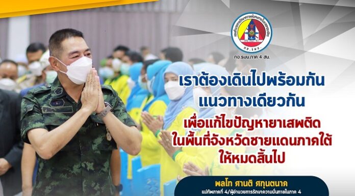 “เราต้องเดินไปพร้อมกันและแนวทางเดียวกัน” เพื่อแก้ไขปัญหายาเสพติดในพื้นที่จังหวัดชายแดนภาคใต้ให้หมดสิ้นไป