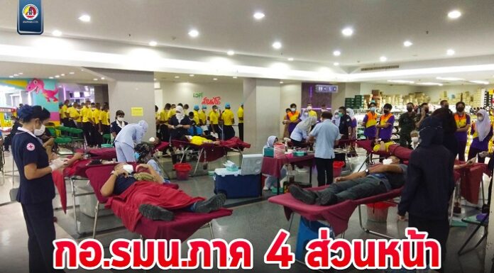 วันนี้ (21 ตุลาคม 2565) เวลา 10.00 น. ที่บริเวณหน้าอำเภอยิ้ม ชั้น 2 ศูนย์การค้าโคลีเซียมยะลา อำเภอเมือง จังหวัดยะลา กองอำนวยการรักษาความมั่นคงภายในภาค 4 ส่วนหน้า นำกำลังพล ร่วมบริจาคโลหิต ในกิจกรรมบริจาคโลหิต “เพิ่มโลหิต เพิ่มชีวิต” ซึ่งสำนักงานเหล่ากาชาดจังหวัดยะลา และศูนย์การค้าโคลีเซียมยะลา ได้ร่วมกันจัดกิจกรรมในครั้งนี้ขึ้น เพื่อสมทบโลหิตให้กับโรงพยาบาลศูนย์ยะลา ในการช่วยเหลือผู้ป่วยในพื้นที่จังหวัดชายแดนภาคใต้ โดยมีผู้ร่วมบริจาคโลหิต จำนวน 98 คน