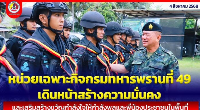 หน่วยเฉพาะกิจกรมทหารพรานที่ 49 เดินหน้าสร้างความมั่นคง และเสริมสร้างขวัญกำลังใจให้กำลังพลและพี่น้องประชาชนในพื้นที่อำเภอจะแนะ จังหวัดนราธิวาส