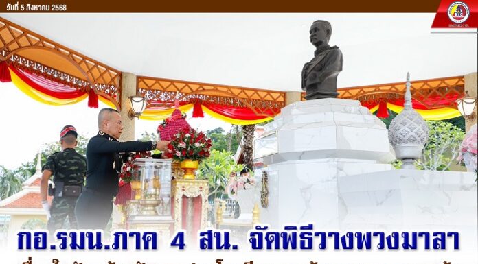 กอ.รมน.ภาค 4 สน. จัดพิธีวางพวงมาลาเนื่องในวันคล้ายวันสถาปนาโรงเรียนนายร้อยพระจุลจอมเกล้า