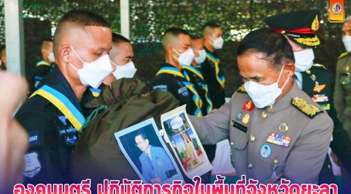 พลเอก ไพบูลย์ คุ้มฉายา องคมนตรี ปฏิบัติภารกิจในพื้นที่จังหวัดยะลา เชิญสิ่งของพระราชทานมอบแก่เจ้าหน้าที่ในพื้นที่จังหวัดชายแดนภาคใต้
