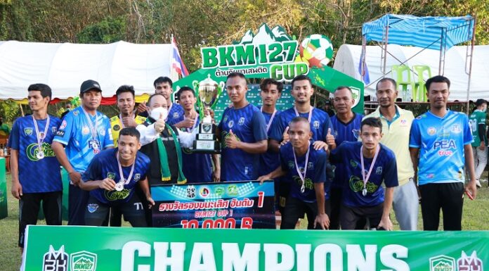 ปิดฉากอย่างยิ่งใหญ่ การแข่งขันฟุตบอล 7 คน BKM 127 CUP ต้านภัยยาเสพติด ครั้งที่ 1 สร้างเยาวชนรุ่นใหม่ห่างไกลยาเสพติด มุ่งเน้นเพิ่มทักษะ ด้านการกีฬา สร้างนักกีฬาสู่เวทีระดับชาติ