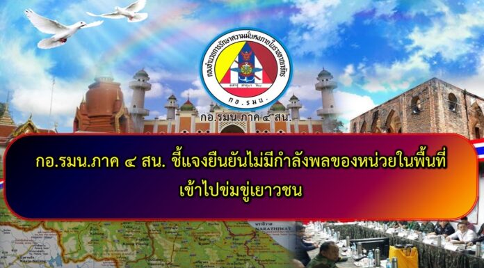 ตามที่เพจข่าวความจริง สามจังหวัดภาคใต้ ได้โพสต์ข้อความ กรณีเมื่อวันที่ 11 พฤษภาคม 2565 ได้มีกำลังพลหน่วยเฉพาะกิจกรมทหารพรานที่ 33 กว่า 10 นาย เข้าไปในหมู่บ้านโฉลง ตำบลปุโรง อำเภอกรงปินัง จังหวัดยะลา เพื่อข่มขู่หาข้อมูลผู้ไปร่วมงานเฉลิมฉลองวันฮารีรายอ ที่หาดวาสุกรี อำเภอสายบุรี จังหวัดปัตตานี ที่ผ่านมา ทั้งนี้จากข้อความที่ปรากฎ กองอำนวยการรักษาความมั่นคงภายในภาค 4 ส่วนหน้า ได้ดำเนินการตรวจสอบแล้ว ไม่พบว่ามีกำลังพลของหน่วยในพื้นที่ เข้าไปข่มขู่เยาวชนดังที่กล่าวอ้าง สำหรับภาพที่ปรากฏเป็นภาพเก่าเมื่อวันที่ 4 พฤษภาคม 2565 เวลา 10.30 น. โดยหน่วยเฉพาะกิจกรมทหารพรานที่ 47 ได้จัดกำลังเข้าไปสนับสนุนภารกิจของนายอำเภอกรงปินัง และติดตามความคืบหน้า ในการสร้างบ้านให้ราษฎรผู้ยากไร้ จึงไม่เป็นไปตามที่เพจดังกล่าวได้พยายามเสนอข้อมูลอันเป็นเท็จแต่อย่างใด