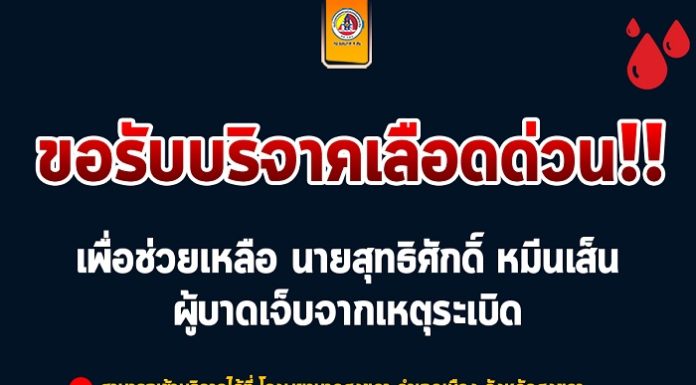 ขอบริจาคเลือดด่วน!!! ระบุบริจาคเลือดเพื่อช่วยเหลือนายสุทธิศักดิ์ หมีนเส็น ผู้บาดเจ็บจากเหตุระเบิด