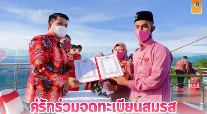 คู่รัก 31 คู่ ร่วมจดทะเบียนสมรส ในวันแห่งความรัก บนจุดชมวิวสกายวอร์ค ทะเลหมอกอัยเยอร์เวง อ.เบตง จ.ยะลา ท่ามกลางบรรยากาศสุดชื่นมื่น ภายใต้มาตรการป้องกันโควิด-19