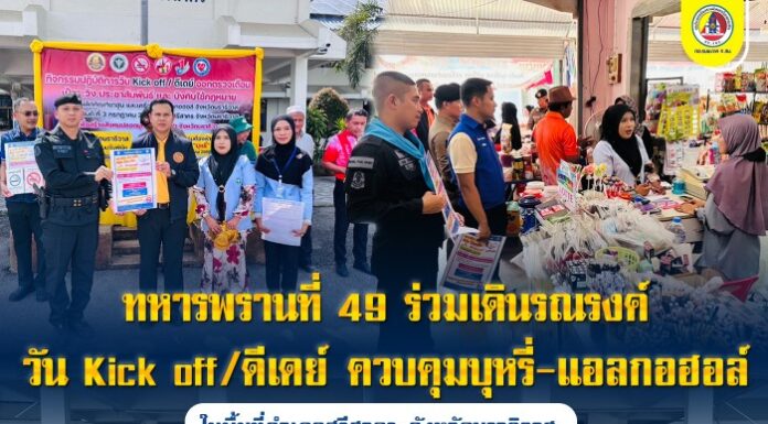 ทหารพราน 49 ร่วมเดินรณรงค์วัน Kick off / ดีเดย์ ควบคุมบุหรี่ – แอลกอฮอล์ในพื้นที่อำเภอศรีสาคร จังหวัดนราธิวาส