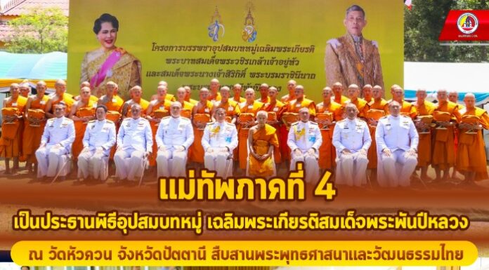 แม่ทัพภาคที่ 4 เป็นประธานพิธีอุปสมบทหมู่ เฉลิมพระเกียรติสมเด็จพระพันปีหลวง ณ วัดหัวควน จังหวัดปัตตานี สืบสานพระพุทธศาสนาและวัฒนธรรมไทย