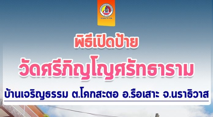 พิธีเปิดป้ายวัดศรีภิญโญศรัทธาราม บ้านเจริญธรรม ตำบลโคกสะตอ อำเภอรือเสาะ จังหวัดนราธิวาส