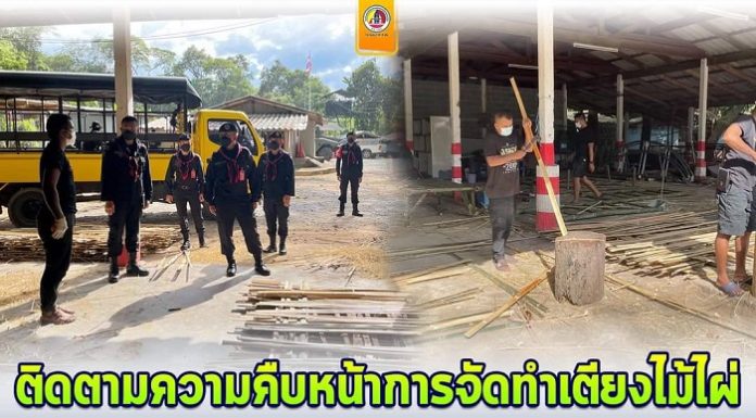 ติดตามความคืบหน้าในการจัดทำเตียงนอนชั่วคราวแบบไม้ไผ่ เพื่อให้การสนับสนุนกับแก่โรงพยาบาลสนามในพื้นที่