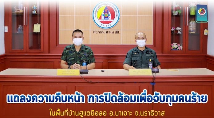วันนี้ (8 ตุลาคม 2564) ที่ห้องแถลงข่าว ศูนย์ประชาสัมพันธ์ กองอำนวยการรักษาความมั่นคงภายในภาค 4 ส่วนหน้า ค่ายสิรินธร ตำบลเขาตูม อำเภอยะรัง จังหวัดปัตตานี พันเอก เกียรติศักดิ์ ณีวงษ์ โฆษกกองอำนวยการรักษาความมั่นคงภายในภาค 4 ส่วนหน้า พร้อมด้วย พันตำรวจโท ภนภัต ภานุเดชากฤษ ผู้ช่วยโฆษกกองกำลังตำรวจจังหวัดชายแดนภาคใต้ ร่วมแถลงข่าวความคืบหน้ากรณีเจ้าหน้าที่สนธิกำลัง 3 ฝ่าย เข้าบังคับใช้กฎหมายต่อกลุ่มผู้ก่อเหตุรุนแรงที่หลบซ่อนในป่าพรุเสม็ด ในพื้นที่บ้านฮูแตยือลอ อำเภอบาเจาะ จังหวัดนราธิวาส หลังผ่านมา 11 วัน พบผู้ก่อเหตุรุนแรงเสียชีวิตเพิ่ม 1 ราย ทราบชื่อผู้เสียชีวิตคือ นายมะสะกรี อูแล อายุ 43 ปี เป็นผู้ก่อเหตุรุนแรงรายสำคัญ พบมีหมาย ป.วิอาญา 7 หมาย