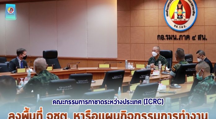 ที่ ห้องประชุม 1 กองอำนวยการรักษาความมั่นคงภายในภาค 4 ส่วนหน้า (กอ.รมน.ภาค 4 สน.) ตำบลเขาตูม อำเภอยะรัง จังหวัดปัตตานี พลตรี วัฒนา กรมขันธ์ เลขาธิการ กอ.รมน.ภาค 4 สน. ให้การต้อนรับ นาย จอห์น แพทริค นอร์ตัน คณะกรรมการกาชาดระหว่างประเทศ (ICRC : International Committee of the Red Cross) และคณะ ในโอกาสเข้าร่วมประชุม ปรึกษา/หารือ เพื่อนำเสนอภาพรวมกิจกรรมการทำงานของ ICRC ในช่วงเวลาที่เหลือในปีปัจจุบันและพูดคุยเกี่ยวกับแผนกิจกรรมการทำงานของปี 2565 ที่จะได้มีการประสานความร่วมมือกันกับ กอ.รมน.ภาค 4 สน. เพื่อให้พี่น้องประชาชนในพื้นที่จังหวัดชายแดนภาคใต้ได้รับผลประโยชน์สูงสุด รวมทั้งแนะนำผู้ที่จะมารับตำแหน่งหัวหน้าคณะทำงานภาคใต้ท่านใหม่ คือ นาย ฌาคส์ โกลด ปอล นิกิตัส กีย์ ดูโครส์...