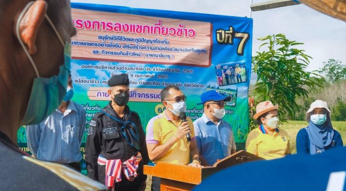 วันนี่้ (9 กุมภาพันธ์ 2565) ที่แปลงนาข้าว บ้านปาโล๊ะ หมู่ที่ 3 ตำบลบาโงย อำเภอรามัน จังหวัดยะลา หน่วยเฉพาะกิจกรมทหารพรานที่ 41 จัดกำลังพลชุดปฏิบัติการเสริมสร้างความเข้าใจ ร่วมกับ เกษตรอำเภอรามัน, เจ้าหน้าที่ศูนย์วิจัยพันธ์ข้าว, ชุดคุ้มครองตำบลบาโงย, ผู้นำชุมชน, ผู้นำศาสนา และประชาชนในพื้นที่ ร่วมกิจกรรมลงเเขกเกี่ยวข้าว อนุรักษ์วิถีชีวิตและภูมิปัญญาท้องถิ่น เพื่อพัฒนาการเกษตรอย่างยั่งยืน เสริมสร้างความสามัคคีและสมานฉันท์ในชุมชน ปีที่ 7 โดยมี ส.ต.ต. ชัยวัฒน์ อินอ่อน ปลัดอาวุโสอำเภอรามัน เป็นประธานเปิดกิจกรรม ซึ่งมีกิจกรรมมากมาย อาทิ ให้ความรู้การเกี่ยวข้าวและเก็บรักษาพันธุ์ข้าว การลงแขกเกี่ยวข้าว การประกวดชาวนาต้นแบบ ประกวดพันธุ์ข้าว แข่งขันเกี่ยวข้าว แข่งขันเป่าปี่ตอซังข้าว และกินข้าวใหม่ (มาแกนาซิบารู)