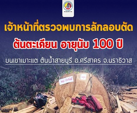 เจ้าหน้าที่ตรวจพบการลักลอบตัด ‘ต้นตะเคียน’ อายุนับ 100 ปี บนเขาเมาะแต ต้นน้ำสายบุรี อำเภอศรีสาคร จังหวัดนราธิวาส