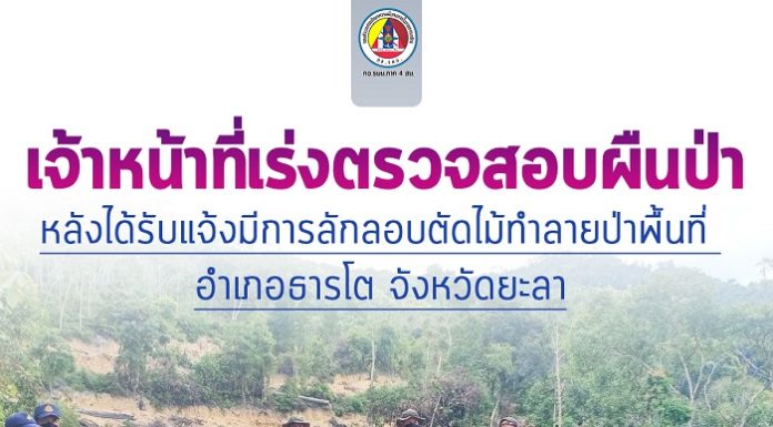เจ้าหน้าที่เร่งตรวจสอบผืนป่า หลังได้รับแจ้งมีการลักลอบตัดไม้ทำลายป่าพื้นที่ อำเภอธารโต จังหวัดยะลา