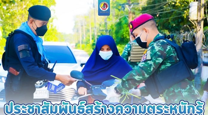 ที่บริเวณหน้าวัดเจาะไอร้องธรรมมาราม บ้านเจาะไอร้อง หมู่ที่1 ตำบลจวบ อำเภอเจาะไอร้อง จังหวัดนราธิวาส หน่วยเฉพาะกิจกรมทหารพรานที่ 48 โดยกองร้อยทหารพรานที่ 4816 ร่วมกับ ชุดสันติสุขที่ 403 หน่วยเฉพาะกิจสันติสุข จัดกิจกรรมประชาสัมพันธ์ ตระหนักรู้สู้ภัยโควิด-19 เพื่อประชาสัมพันธ์ให้ประชาชนในพื้นที่ที่ใช้เส้นทางสัญจรไป-มาได้ตระหนักรู้วิธีในการป้องกันตนเองจากการแพร่ระบาดของเชื้อไวรัสโควิด-19 ได้อย่างถูกวิธี พร้อมทั้งขอความร่วมมือให้กับประชาชนร่วมกันปฏิบัติตามมาตรการป้องกันการแพร่ระบาดของเชื้อไวรัส COVID-19 โดยการปฏิบัติตามหลัก D-M-H-T-T ของกรมควบคุมโรค กระทรวงสาธารณสุขอย่างเคร่งครัด ไม่ว่าจะเป็นการสวมหน้ากากอนามัยออกจากเคหะสถาน การล้างมือบ่อยๆ ด้วยน้ำสบู่หรือเจลแอลกอฮอล์ การเว้นระยะห่างเมื่ออยู่ในที่สาธารณะหรือที่ชุมชน เพื่อเป็นการระวังและป้องกันการแพร่กระจายของเชื้อไวรัส COVID-19 พร้อมทั้งยังได้ประชาสัมพันธ์และเชิญชวนประชาชนในพื้นที่ร่วมกันฉีดวัคซีน เพื่อเป็นการเสริมสร้างภูมิคุ้มกันหมู่ที่ดี
