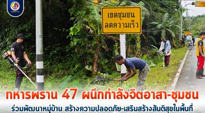 ทหารพราน 47ผนึกกำลังจิตอาสา-ชุมชน ร่วมพัฒนาหมู่บ้าน สร้างความปลอดภัย-เสริมสร้างสันติสุขในพื้นที่