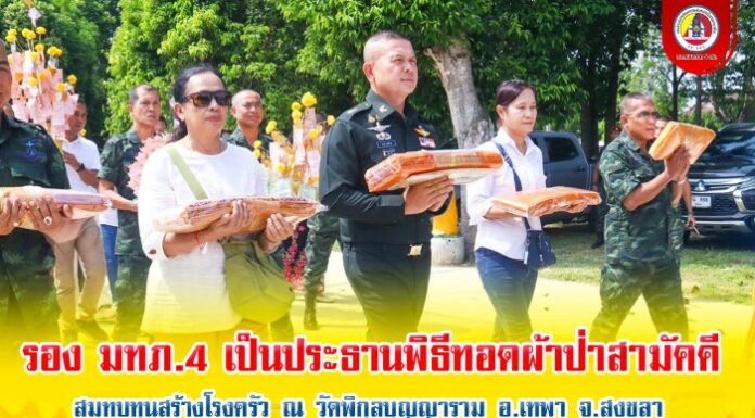 รองแม่ทัพภาคที่ 4 เป็นประธานพิธีทอดผ้าป่าสามัคคีสมทบทุนสร้างโรงครัว ณ วัดพิกุลบุญญาราม อ.เทพา จ.สงขลา