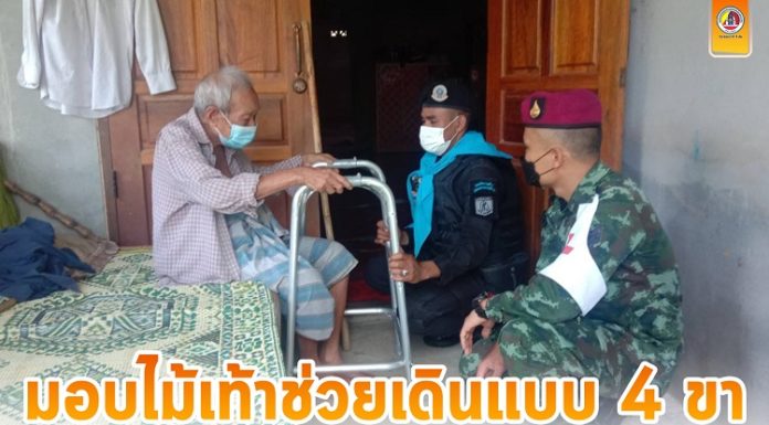 ฉก.ทพ.46 มอบไม้เท้าช่วยเดินแบบ 4 ขา แก่ประชาชนผู้สูงอายุในพื้นที่อำเภอรือเสาะ จังหวัดนราธิวาส พัฒนาคุณภาพชีวิตของผู้สูงอายุให้สามารถช่วยเหลือตนเองได้