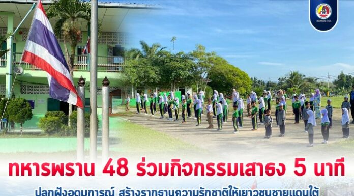 ทหารพราน 48 ร่วมกิจกรรมเสาธง 5 นาที ปลูกฝังอุดมการณ์ สร้างรากฐานความรักชาติให้เยาวชนชายแดนใต้