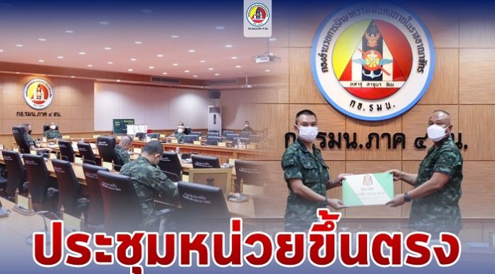 วันนี้ 6 สิงหาคม 2564 เวลา 09.30 น ที่ ห้องประชุม 1 กองอำนวยการรักษาความมั่นคงภายในภาค 4 ส่วนหน้า ค่ายสิรินธร ตำบลเขาตูม อำเภอยะรัง จังหวัดปัตตานี พลโท เกรียงไกร ศรีรักษ์ แม่ทัพภาคที่ 4 /ผู้อำนวยการรักษาความมั่นคงภายในภาค 4 ร่วมประชุมชี้แจง และสั่งการของผู้บัญชาการทหารบกต่อผู้บังคับหน่วยขึ้นตรงกองทัพบก ครั้งที่ 7/2564 ผ่านระบบทางไกลผ่านจอภาพ ให้หน่วยรับนโยบายปฏิบัติงานตามพันธกิจ 3 ประการของกองทัพบก ให้เกิดประสิทธิภาพ ตลอดจนติดตามผลการปฏิบัติงาน และแนวโน้มสถานการณ์ในพื้นที่ โดยมี พลเอก ณรงค์พันธ์ จิตต์แก้วแท้ ผู้บัญชาการทหารบก เป็นประธานการประชุม