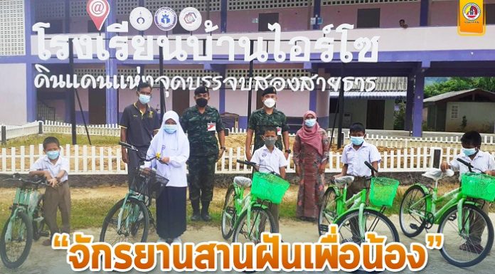 พันโท วัตสันต์ โพธิ์สุภาพพร ผู้บังคับกองพันทหารราบที่ 1 กรมทหารราบที่ 151 พร้อมด้วย คณะครู และผู้นำท้องถิ่น ร่วมกันมอบจักรยานให้กับน้องๆ นักเรียนที่มีผลการเรียนดีแต่มีฐานะยากจน ภายใต้ “โครงการจักรยานสานฝัน ปันสุข กองทัพบก” โดยนำจักรยานจำนวน 4 คัน มามอบให้กับนักเรียน ประกอบด้วย เด็กหญิง นูรีกสมีย์ บอซอ, เด็กหญิง ฟาตีมา มะเราะ, เด็กชาย นิอัฎฮา สาเมาะ และ เด็กชาย กาบีรอ เจ๊ะอาแซ ซึ่งเป็นเด็กนักเรียนในพื้นที่ตำบลละหาร อำเภอยี่งอ จังหวัดนราธิวาส เพื่อใช้เป็นพาหนะในการเดินทางไปโรงเรียน หรือใช้ในชีวิตประจำวัน ซึ่งการจัดกิจกรรมในครั้งนี้ ผู้เข้าร่วมกิจกรรมฯ ปฏิบัติภายใต้มาตรการป้องกันเชื้อไวรัส COVID – 19 อย่างเคร่งครัด