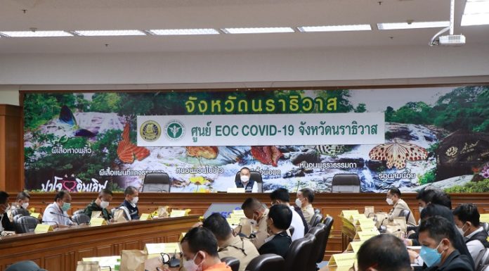 วันนี้ (2 ธันวาคม 2564) ที่ศาลากลางจังหวัดนราธิวาส พลเอก ณัฐพล นาคพาณิชย์ ที่ปรึกษานายกรัฐมนตรี และผู้อำนวยการศูนย์บูรณาการแก้ไขสถานการณ์โควิด-19 (ศบค.ส่วนหน้า) เป็นประธานประชุมติดตามผลการดำเนินการตามมาตรการป้องกันการแพร่ระบาดของโรคโควิด-19 ในพื้นที่จังหวัดชายแดนภาคใต้ เพื่อกำกับ ดูแล ประสานงาน ขับเคลื่อน เร่งรัดและติดตาม การปฏิบัติงานเพื่อแก้ไขปัญหาการแพร่ระบาดของโรคโควิด-19 ในพื้นที่จังหวัดชายแดนภาคใต้ ด้วยการบูรณาการจากทุกภาคส่วน ทั้งภาครัฐ ภาคเอกชน และภาคประชาชนเข้ามามีส่วนร่วมในการขับเคลื่อนการแก้ไขปัญหาการระบาดของโรคโควิด-19 เพื่อเตรียมเปิดเมือง เป็นของขวัญให้กับพี่น้องประชาชน ต้อนรับปีใหม่ที่จะถึงนี้ โดย นายไพโรจน์ จริตงาม รองผู้ว่าราชการจังหวัดนราธิวาส, นายแพทย์เฉลิมพล โอสถพรมมา ผู้อำนวยการสำนักงานป้องกันควบคุมโรคที่ 12 จังหวัดสงขลา, พลตรี ปราโมทย์ พรหมอินทร์ รองผู้อำนวยการรักษาความมั่นคงภายในภาค 4 ส่วนหน้า/โฆษก ศบค.ส่วนหน้า และส่วนราชการที่เกี่ยวข้องเข้าร่วมประชุมครั้งนี้