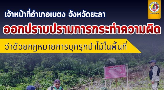 เจ้าหน้าที่อำเภอเบตง จังหวัดยะลา ออกปราบปรามการกระทำความผิด ว่าด้วยกฎหมายการบุกรุกป่าไม้ในพื้นที่