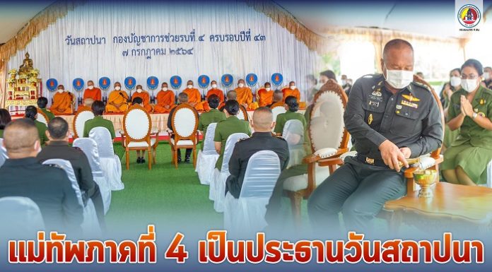 วันนี้ 7 กรกฎาคม 2564 เวลา 10.00 น. ที่กองบัญชาการช่วยรบที่ 4 ค่ายเทพสตรีศรีสุนทร ตำบลกะปาง อำเภอทุ่งสง นครศรีธรรมราช พลโทเกรียงไกร ศรีรักษ์ แม่ทัพภาคที่ 4 เดินทางเป็นประธานในพิธีทำบุญเนื่องในคล้ายวันสถาปนา กองบัญชาการช่วยรบที่ 4 ครบรอบปีที่ 43 เพื่อเป็นการอุทิศส่วนบุญกุศลให้แก่ดวงจิตวิญญาณของกำลังพลผู้เสียชีวิตทั้งในสนามและที่ตั้งปกติ และความเป็นสิริมงคลแก่หน่วย สร้างขวัญกำลังใจแก่กำลังพลและครอบครัว พร้อมกันนี้ ได้เปิด อาคารสหกรณ์ออมทรัพย์กองบัญชาการช่วยรบที่ 4 จำกัด และเปิดอาคารสมาคมแม่บ้านกองบัญชาการช่วยรบที่ 4 ไปสวัสดิการให้แก่กำลังพลและครอบครัว โดยมี พลตรี ฐกร เนียมรินทร์ ผู้บัญชาการกองบัญชาการช่วยรบที่ 4, คุณคนึงนิตย์ ศรีรักษ์ ประธานสมาคมแม่บ้านทหารบกสาขากองทัพภาคที่ 4 อดีตผู้บังคับบัญชา หน่วยงานภาครัฐ เอกชน กำลังพลและครอบครัวหน่วยทหารภายในค่ายเทพสตรีศรีสุนทร เข้าร่วมพิธี ก่อนร่วมปลูกต้นไม้ "ต้นราชพฤกษ์" เป็นที่ระลึกให้แก่หน่วย