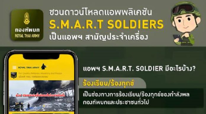 แอพพลิเคชั่น S.M.A.R.T. SOLDIERS เวอร์ชั่นสมบูรณ์ จะเป็นแอพพลิเคชั่นที่ กองทัพบก (Royal Thai Army) เป็นผู้พัฒนาเท่านั้น