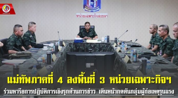 แม่ทัพภาคที่ 4 ลงพื้นที่ 3 หน่วยเฉพาะกิจฯ ร่วมหารือการปฏิบัติการเชิงรุกด้านการข่าว เดินหน้ากดดันกลุ่มผู้ก่อเหตุรุนแรง