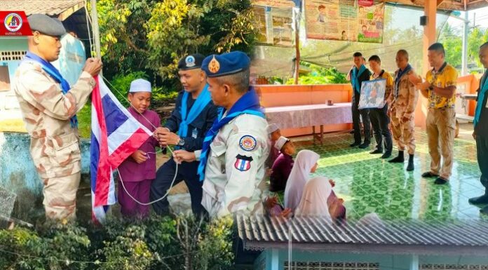 ในการนี้ คณะเจ้าหน้าที่ได้ร่วมกิจกรรม “เสาธง 5 นาที” โดยให้ความรู้เรื่องการเชิญธงชาติไทยอย่างถูกต้อง อธิบายความหมายของสีในธงชาติ และสื่อสารคุณค่าของชาติ ศาสนา พระมหากษัตริย์ เพื่อปลูกจิตสำนึกให้เด็กและเยาวชนมีความรัก ความภาคภูมิใจในความเป็นไทย พร้อมส่งเสริมแนวคิด “ความสงบ ความสันติสุข และรู้รักสามัคคี”