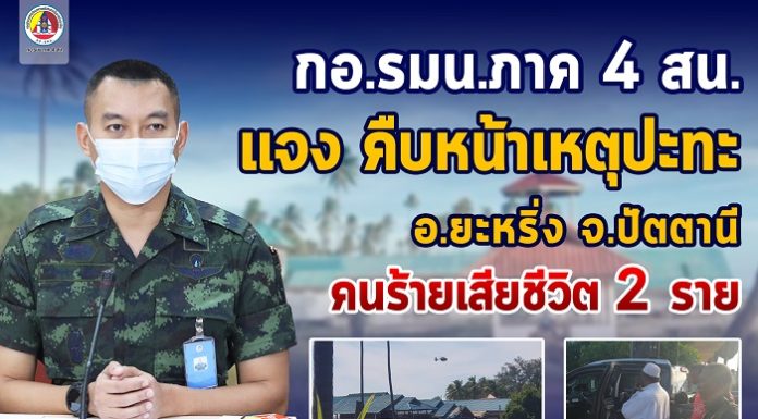 จากกรณีเจ้าหน้าที่สนธิกำลัง 3 ฝ่าย เข้าพิสูจน์ทราบและบังคับใช้กฎหมายกับกลุ่มผู้ก่อเหตุรุนแรงที่เข้ามาหลบซ่อนตัวในพื้นที่ บ.ปาตาบูดี ม.3 ต.แหลมโพธิ์ อ.ยะหริ่ง จ.ปัตตานี และได้เกิดการยิงต่อสู้กันขึ้นเป็นเหตุให้ ผู้ก่อเหตุรุนแรง เสียชีวิต 2 ราย เจ้าหน้าที่ปลอดภัยเหตุเกิด เมื่อวันที่ 21 มิ.ย. 64 เวลา 04.24 น.