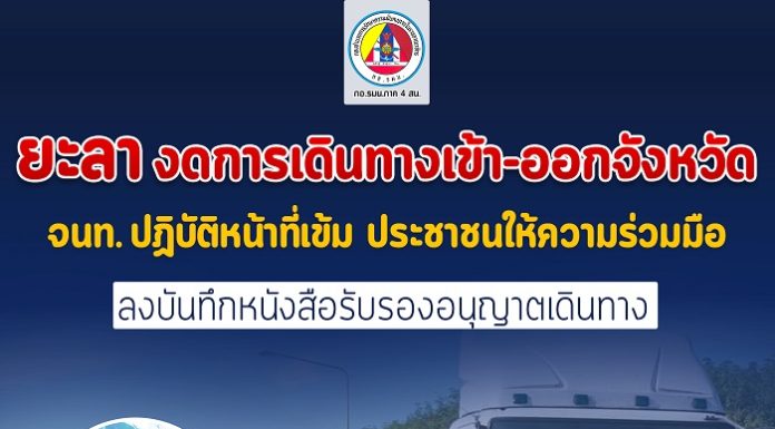 ยะลา งดการเดินทางเข้า-ออกจังหวัด เจ้าหน้าที่ปฏิบัติหน้าที่เข้ม ประชาชนให้ความร่วมมือ ลงบันทึกหนังสือรับรองอนุญาตเดินทาง