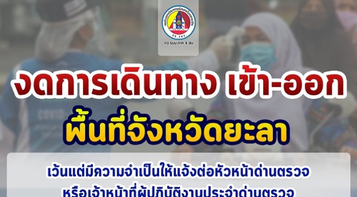 จังหวัดยะลา งดเดินทางเข้า – ออกจังหวัด (ล็อคดาวน์) อีกรอบ มีผลตั้งแต่ 15 มิ.ย. ถึงวันที่ 7 ก.ค 64