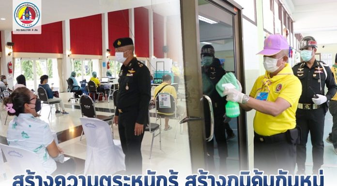 จากนั้น พลตรี ปราโมทย์ พรหมอินทร์ ผู้บัญชาการมณฑลทหารบกที่ 41 พร้อมด้วยแพทย์หญิง จันทนี พรหมอินทร์ ประธานสมาคมแม่บ้านทหารบก สาขามณฑลทหารบกที่ 41 ได้ลงพื้นที่ไปยังสโมสรรื่นฤดี ค่ายวชิราวุธ อำเภอเมือง จังหวัดนครศรีธรรมราชา เพื่อให้กำลังใจกับเจ้าหน้าที่ผู้ปฏิบัติงาน รวมถึงพี่น้องประชาชนที่มารับบริการ โดยเน้นให้เจ้าหน้าที่ผู้ปฏิบัติงานช่วยเหลือพี่น้องประชาชนอย่างเต็มที่และต้องป้องกันตนเองในฐานะบุคลากรทางการแพทย์ รวมทั้งเน้นย้ำขอความร่วมมือจากพี่น้องประชาชนและกำลังพล มาร่วมฉีดวัคซีนป้องกันโควิด-19...