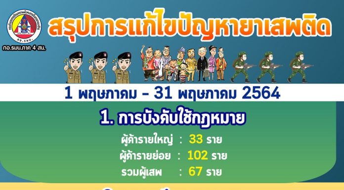 กอ.รมน.ภาค 4 ส่วนหน้า รายงานผลการปฏิบัติงานเดินหน้าแก้ปัญหายาเสพติดประจำเดือนพฤษภาคม 2564