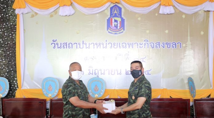 วันนี้ 1 มิถุนายน 2564 เวลา 10.00 น. ที่หน่วยเฉพาะกิจสงขลา ตำบลท่าม่วง อำเภอเทพา จังหวัดสงขลา พลโทเกรียงไกร ศรีรักษ์ แม่ทัพภาคที่4/ผู้อำนวยการรักษาความมั่นคงภายในภาค 4 เป็นประธานในพิธีทำบุญเนื่องในวันสถาปนาหน่วยเฉพาะกิจสงขลาครบรอบ ปีที่ 14 เพื่อความเป็นสิริมงคลแก่หน่วย เป็นขวัญกำลังใจแก่กำลังพลทุกนายที่ปฏิบัติหน้าที่ในปัจจุบัน โดยมี ผู้บังคับบัญชา หัวหน้าส่วนราชการ ข้าราชการ ทหาร ตำรวจ และกำลังพลภายในหน่วย ตลอดจนหน่วยงานภาครัฐ ภาคเอกชนได้เดินทางนำกระเช้าดอกไม้ร่วมแสดงความยินดีและเข้าร่วมพิธีทางศาสนาอย่างพร้อมเพรียง นอกจากนี้ภายในงานได้มีการบริการอาหารและเครื่องดื่มให้กับผู้ร่วมงานภายใต้มาตรการป้องกันการแพร่ระบาดของโควิด-19 อย่างเข้มงวด