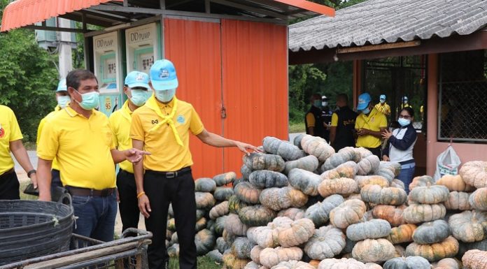 วันนี้ (26 พฤษภาคม 2564) เวลา 08.30 น. ณ สนามหน้ากองร้อย มณฑลทหารบกที่ 41 ตำบลปากพูน อำเภอเมือง จังหวัดนครศรีธรรมราช พันเอก ศุภชัย ปรีชามาตร์ รองผู้บัญชาการมณฑลทหารบกที่ 41 เป็นประธานในพิธีปล่อยแถวกำลังพล และรถครัวสนาม เพื่อลงพื้นที่ช่วยเหลือชาวบ้าน ตามโครงการกองทัพบกช่วยเหลือประชาชน ก่อนเดินทางไปยังแปลงปลูกฟักทอง ของกลุ่มเกษตรกร ในตำบลควนชะริก อำเภอหัวไทร จังหวัดนครศรีธรรมราช โดยได้ร่วมปลูกและเก็บผลผลิต อีกทั้งซื้อผลผลิตฟักทอง จำนวน 8,889 กิโลกรัม กิโลกรัมละ 7 บาท เพื่อบรรเทาความเดือดร้อนในเบื้องต้นให้แก่เกษตรกร ที่ขาดรายได้จากการค้าขายผลผลิต เนื่องด้วยสถานการณ์การแพร่ระบาดของเชื้อไวรัสโควิด 19