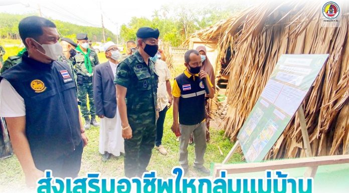 พลตรี ศานติ ศกุนตนาค ผู้บัญชาการกองพลทหารราบที่ 5 / ผู้บังคับหน่วยเฉพาะกิจสงขลา ลงพื้นที่ตรวจเยี่ยมติดตามการส่งเสริมอาชีพ ตามแนวทางเศรษฐกิจพอเพียง และการส่งเสริมอาชีพให้กับกลุ่มแม่บ้านพอเพียงส่งเสริมอาชีพเพาะเห็ดนางฟ้า บ้านล่องควน (รำราโพธิ์) หมู่ที่ 6 ตำบลคูหา อำเภอสะบ้าย้อย จังหวัดสงขลา พร้อมทั้งรับฟังบรรยายสรุปผลการดำเนินงานโรงเพาะเห็ดนางฟ้า ตามโครงการ “กลุ่มแม่บ้านพอเพียงส่งเสริมอาชีพเพาะเห็ดนางฟ้า” และเยี่ยมชมความก้าวหน้าในการดำเนินการของกลุ่ม โดยเน้นการพัฒนาคุณภาพชีวิต สร้างงาน สร้างรายได้ ให้กับกลุ่มแม่บ้านในชุมชน