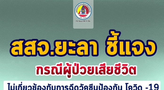 สสจ.ยะลา แจงกรณีสื่อโซเชียลเผยแพร่ประเด็นผู้ป่วยเสียชีวิตในพื้นที่ ม.9 ต.สะเตงนอก อ.เมือง จ.ยะลา ไม่เกี่ยวข้องกับการฉีดวัคซีนป้องกัน COVID-19