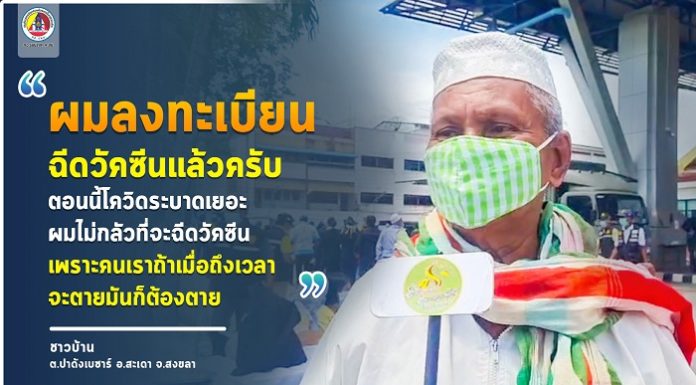 “ผมลงทะเบียน ฉีดวัคซีนแล้วครับ ตอนนี้โควิดระบาดเยอะ ผมไม่กลัวที่จะฉีดวัคซีน เพราะคนเราถ้าเมื่อถึงเวลา จะตายมันก็ต้องตาย”